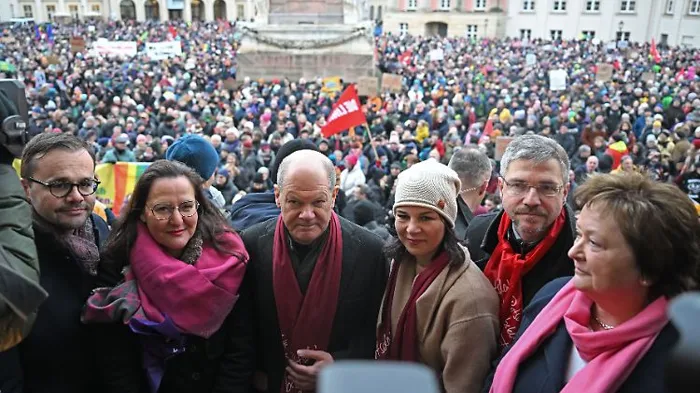 وشارك شولتس، وأنالينا بيربوك، وزيرة الخارجية، في مظاهرة أمس الأحد، ضمت آلاف المتظاهرين عقب الاجتماع السري اليميني المتطرف في بوتسدام عاصمة ولاية براندنبورج، للحديث عن طرد الملايين من الأشخاص ذوي الخلفية المهاجرة.