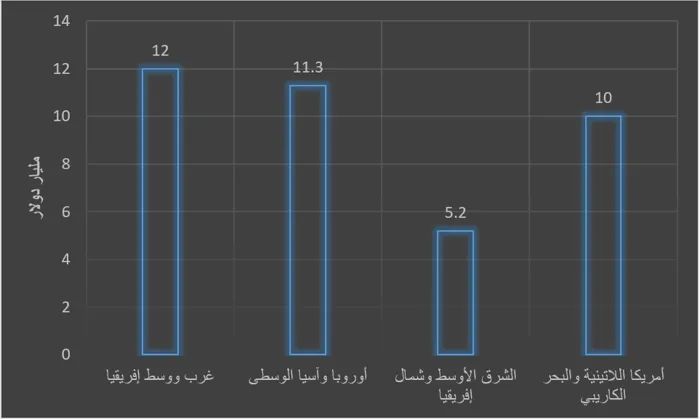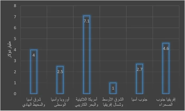 (*) حجم التمويل في 2022: كانت بداية عام 2022 سببًا للعديد من الأزمات الاقتصادية في الدول المختلفة؛ بسبب اندلاع الأزمة الروسية الأوكرانية، وما أحدثته من تقطع سلاسل الإمداد، وكانت الدول النامية من أكثر دول العالم تأثرًا، وعلى الرغم من ذلك بلغ حجم تمويلات البنك الدولي للشرق الأوسط وشمال إفريقيا 6.7 مليار دولار فقط، بينما حصلت دول أمريكا اللاتينية والبحر الكاريبي على 17.4 مليار دولار، و15.3 مليار دولار لأوروبا وآسيا الوسطى، وهو ما يوضح الفارق الكبير في حجم التمويل الموجه للدول الإفريقية والدول الأخرى في مناطق العالم.